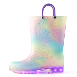 Einfach an-/auszuziehen Griff Leuchten Sie glitzernde wasserdichte, haltbare, geruchlose PVC-Regens tiefel für Kleinkinder auf