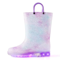 Fácil de poner/Quitar el mango Light up Glittery Impermeable Durable Inodoro PVC Botas de lluvia para niños pequeños