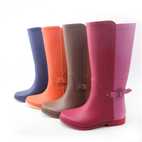 Venta al por mayor, moda femenina, Botas de lluvia hasta la rodilla de goma para montar